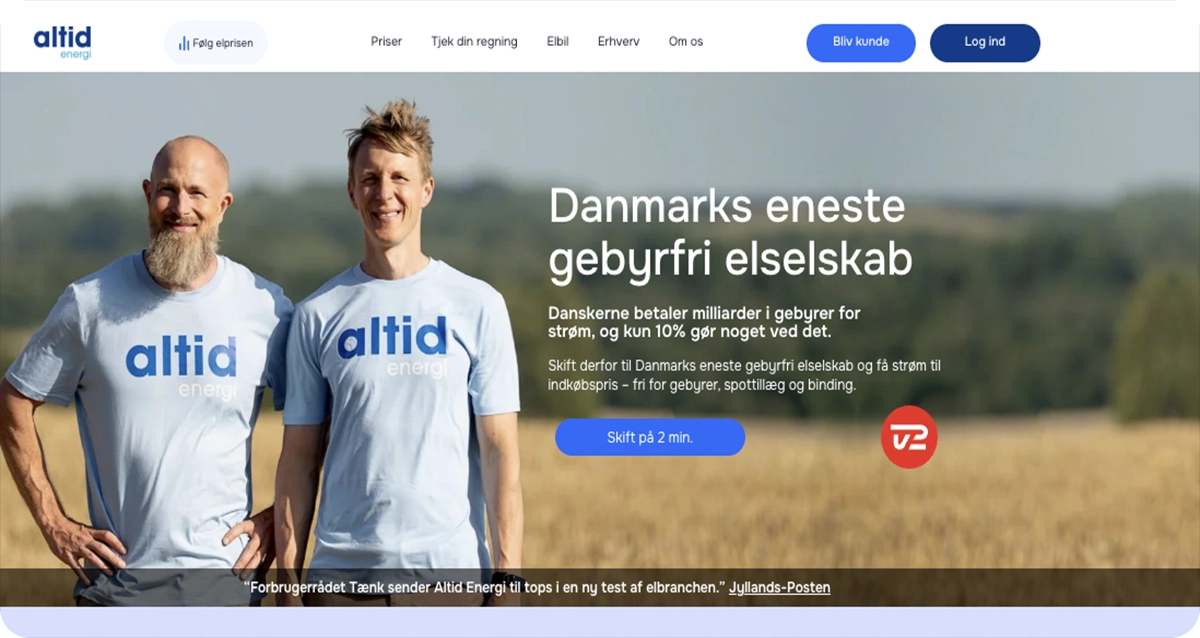 Altid Energi fungerer som elselskab til elbil, fordi du betaler for dit faktiske forbrug uden unødige gebyrer eller komplekse abonnementsstrukturer. Det giver et klart billede af, hvad din strøm til elbil koster over et helt år, og det er netop den gennemsigtighed kombineret med en lav pris, der placerer dem øverst i vores vurdering.